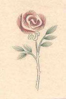 F004 ROSE Degree of Difficulty ♥♥ An Exquisite Design - suitable for other colouring. Worked in Red & Green Threads on a textured Cream Card. |