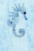 BS001 SEAHORSE Degree of Difficulty ♥ Just the cutest Underwater Creature you're likely to see! Adapted from a lace pattern, origin unknown. Worked in Metallic Threads on a marble Blue Card. |
