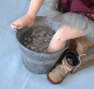 The title of the piece is Seemed appropriate considering the melting ice fields... Even the crate she is sitting on has a message - "Refrigerator -Destination: Alaska" I had enormous fun with this - and not much embellishment (which I'm really not into)... Made from doesuede with a needle sculpted face and handmade clothes and boots.